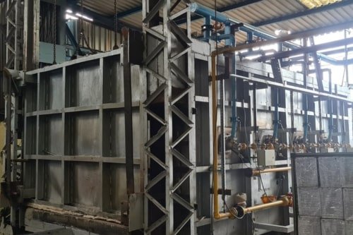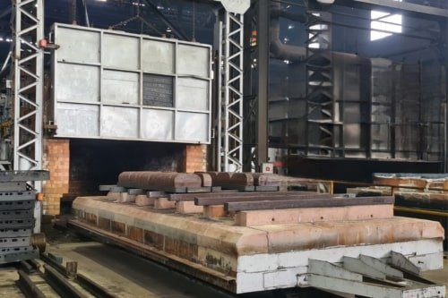 The temperature and atmosphere of our Bogie Hearth Furnaces vary based on the process and application, including tempering, annealing, soft annealing, normalizing, stress relieving, homogenizing, and recrystallization. The typical operating temperature ranges from 250 to 1150°C. These furnaces are used to heat treat heavy and large steel parts.